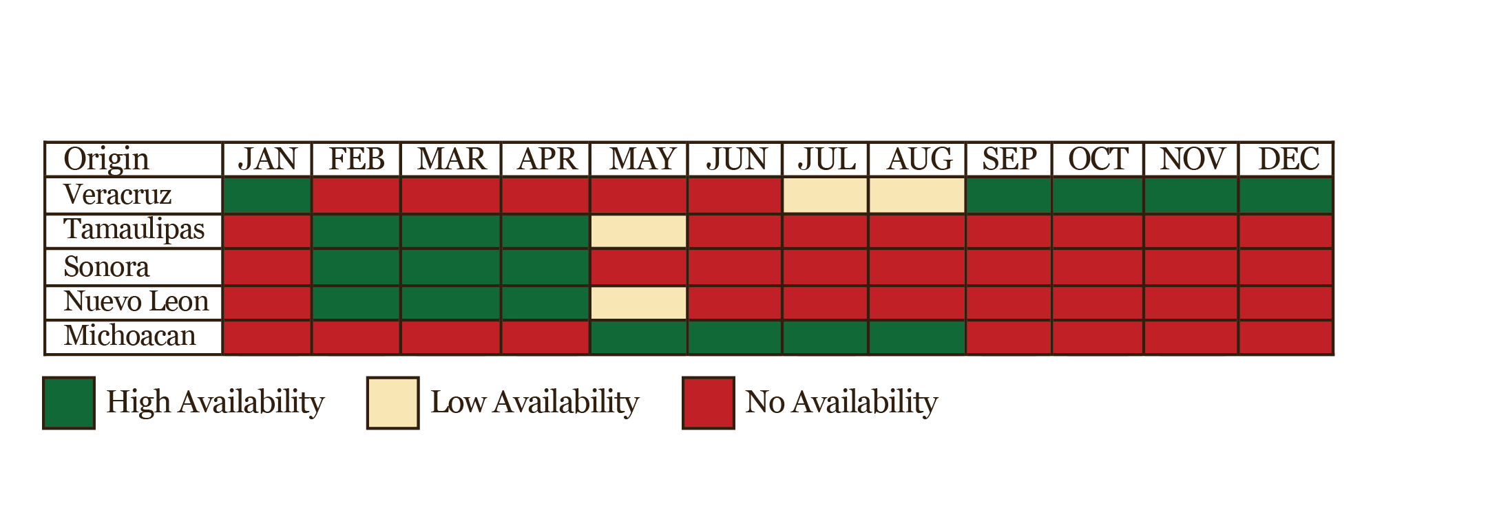 Produced in Mexico in the states of Veracruz, Puebla, and Nuevo Leon.
